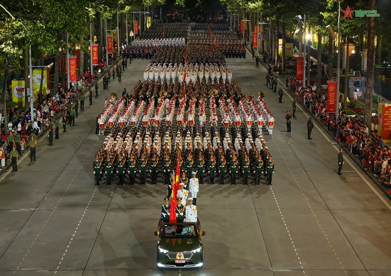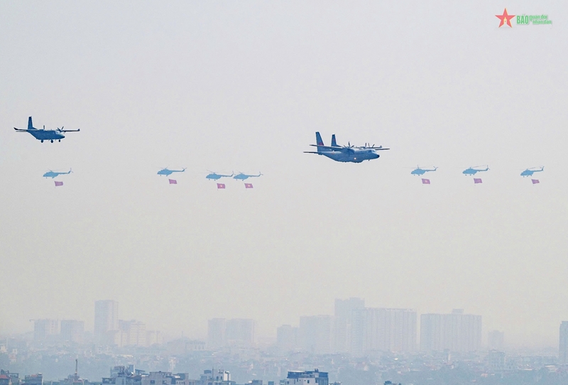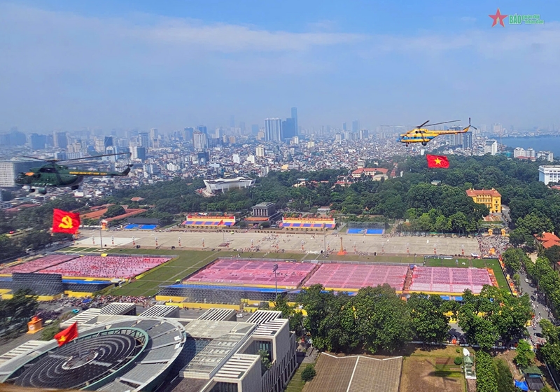 В первой половине дня группы самолетов военно-воздушных сил Вьетнама (ВВС) Вьетнамской народной армии (ВНА) провели тренировочные полеты. Особенно выделялась группа из 10 вертолетов, пролетевших над трибунами с флагами Партии и Государства.