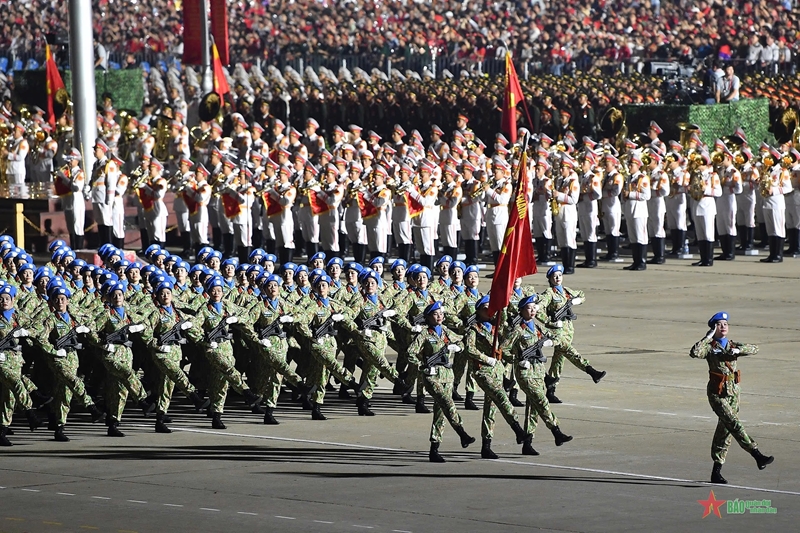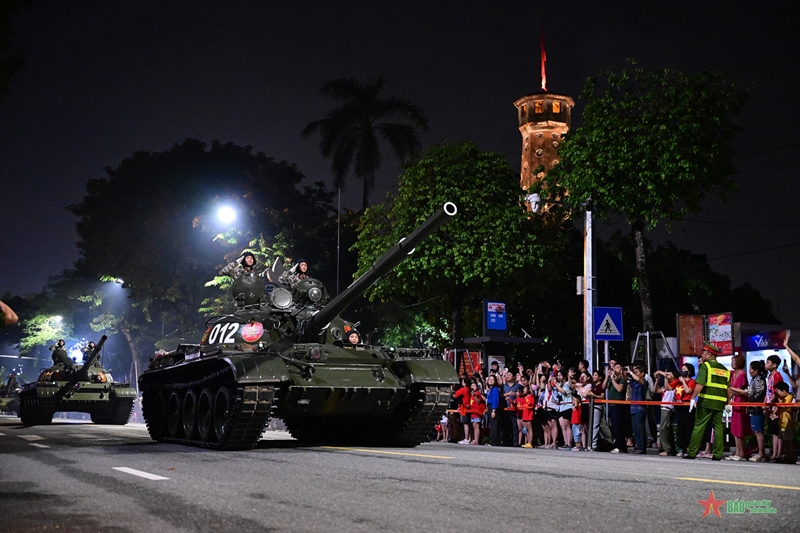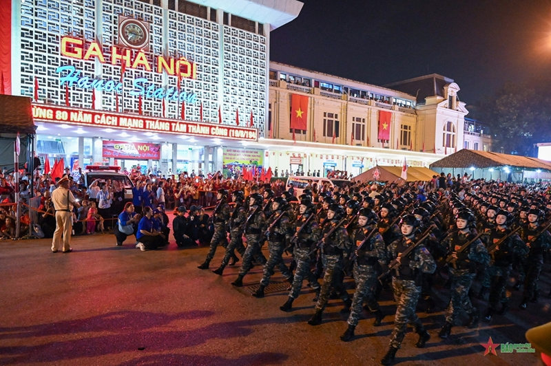 После прохождения мимо трибуны на площади Бадинь, парадные колонны и расчеты разделились на несколько направлений и продолжили движение по центральным улицам г. Ханоя. Парадные расчеты вооруженных сил и общественной безопасности при прохождении трибуны соблюдали дистанцию, равнение, темп; демонстрировали мощные, слаженные движения, отражающие героический дух и силу народных вооруженных сил. |