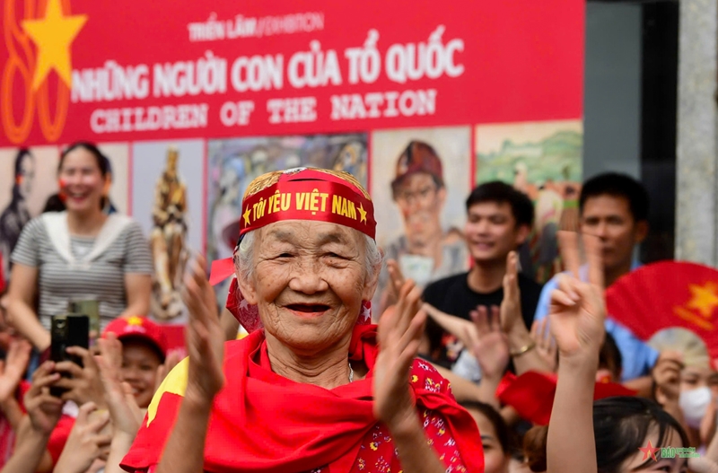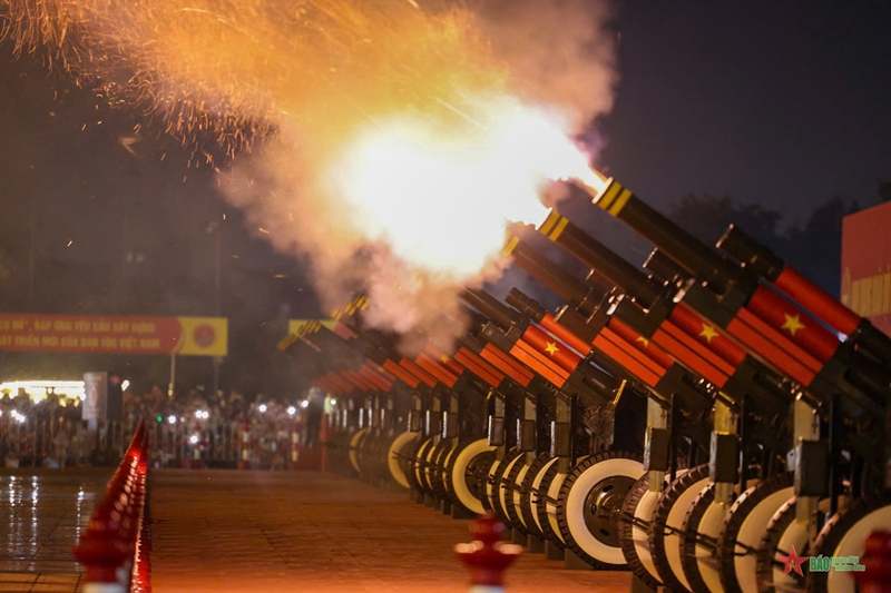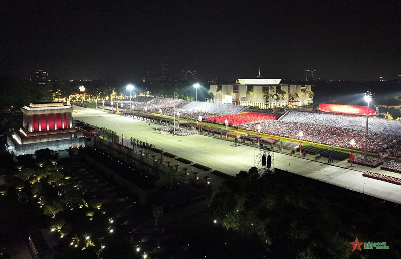 Звуки барабанов и труб, смешанные с громкими аплодисментами масс, создали страстную песню, воссоздавая славные традиции нации на протяжении 80 лет строительства и защиты Отечества.