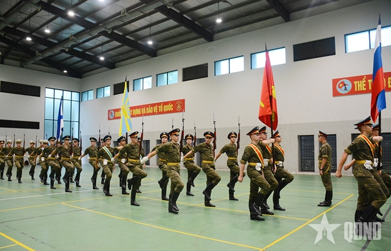В первой половине дня 26 августа проливные дожди обрушились на территорию Академии Viettel, где была организована тренировочная площадка для делегации российских военнослужащих. В связи с погодными условиями место тренировки было перенесено в многофункциональный спортивный зал Академии.