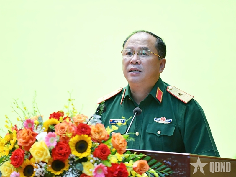 Генерал-майор Лыонг Ван Кием выступает с речью на открытии семинара. |