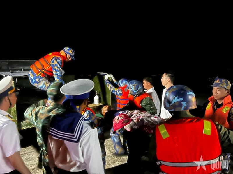 Бригада 955 4-й зоны ВМС передает пациента в лазарет на острове Чыонгша. |