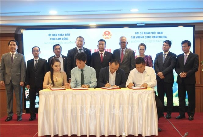 | Представители предприятий провинции Ламдонг и камбоджийские партнеры подписывают договоренность о сотрудничестве. Фото: ВИА |