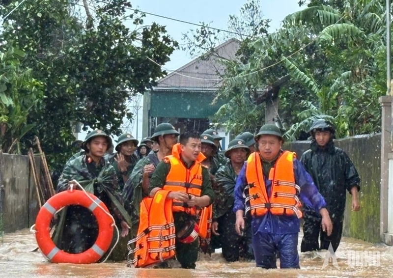 Силы армии принимают участие в спасении жителей в провинции Нгеан во время тайфуна №10. |