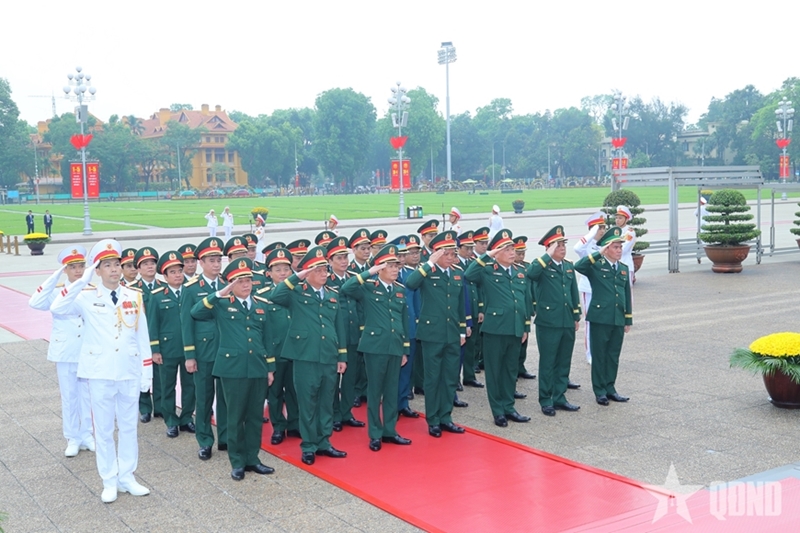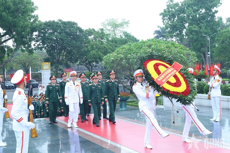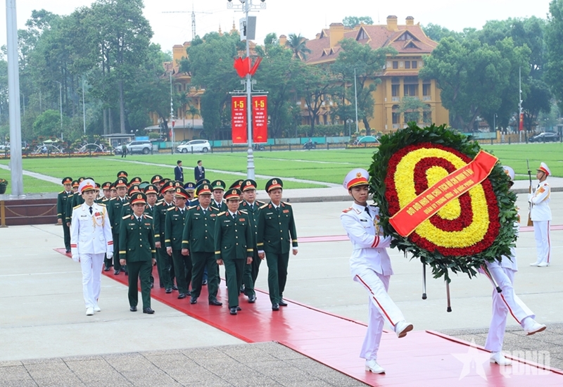 Перед светлой памятью Президента Хо Ши Мина делегаты с глубоким почтением возложили благовония, выразив искреннюю признательность и глубокую благодарность за его великие заслуги – гениального лидера, героя национально-освободительного движения, основателя, руководителя и воспитателя героической Вьетнамской народной армии. Венок делегации имел надпись: «Вечная благодарность великому Президенту Хо Ши Мину», что отражает безграничную признательность и глубокую любовь всей Партии, всего народа и всей армии к любимому Отцу нации – человеку, посвятившему всю свою жизнь делу революции, независимости и свободе Отечества, счастью народа.