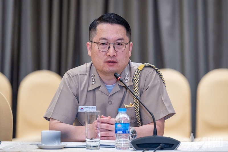 | Подполковник ВМС Пак Чон Хван, Глава корпуса военных атташе иностранных государств, Атташе по вопросам обороны Республики Корея во Вьетнаме, на рабочей встрече. Фото: ВЬЕТ ЧУНГ |
