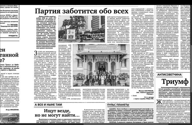 | Статья Заместителя главного редактора газеты «Правда» (печатное издание) Михаила Кострикова. Фото: Скриншот |