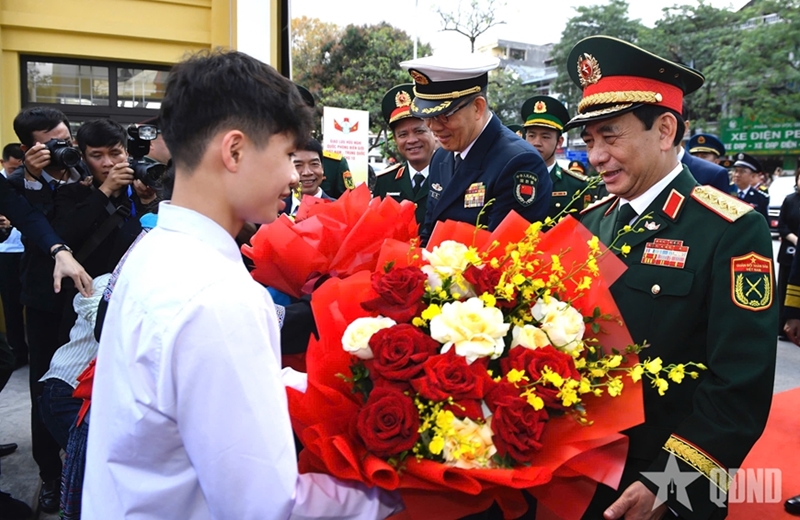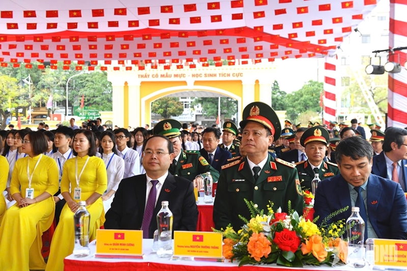 Выступая на мероприятии, Зместитель директора, ответственный за среднюю школу Чан Фу, Май Хоанг Лам подчеркнул, что визит двух Министров вместе с высокопоставленными делегациями Министерств обороны является большим источником поддержки и вдохновения для преподавателей и учащихся школы.