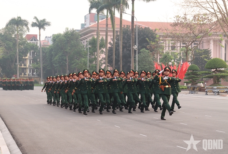 Выполняя указание Министра обороны о внесении изменений в приемы движения обыкновенным и торжественным шагом на церемонии чествования сил, участвовавших в Параде и шествии в честь 80-летия Августовской революции и Дня независимости Вьетнама, Генеральный штаб ВНА поручил Управлению боевой подготовки и военно-учебных заведений Генерального штаба ВНА совместно с профильными органами провести исследования и разработать изменения. Практическая отработка была возложена на Офицерское училище сухопутных войск № 1.