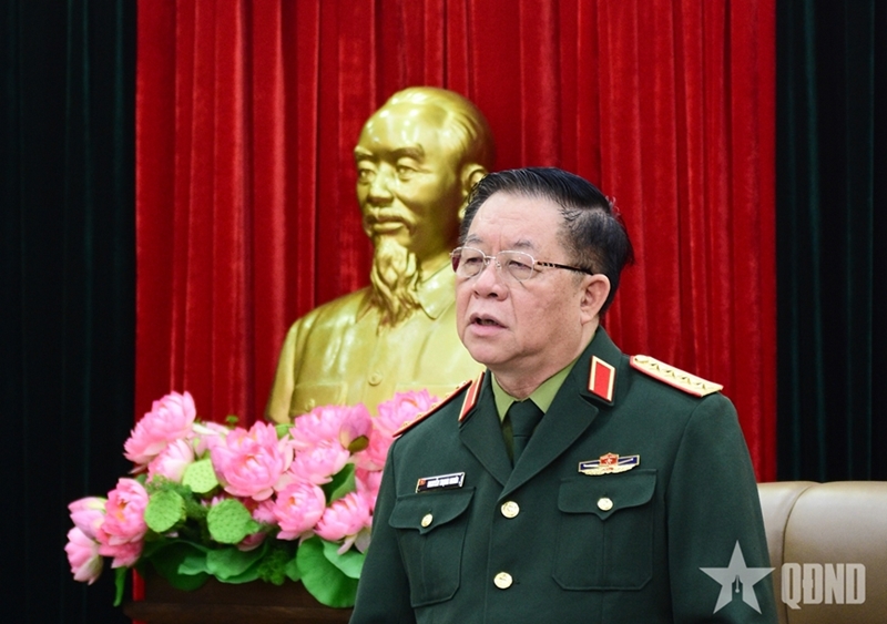 Генерал армии Нгуен Чонг Нгиа выступает с речью. |