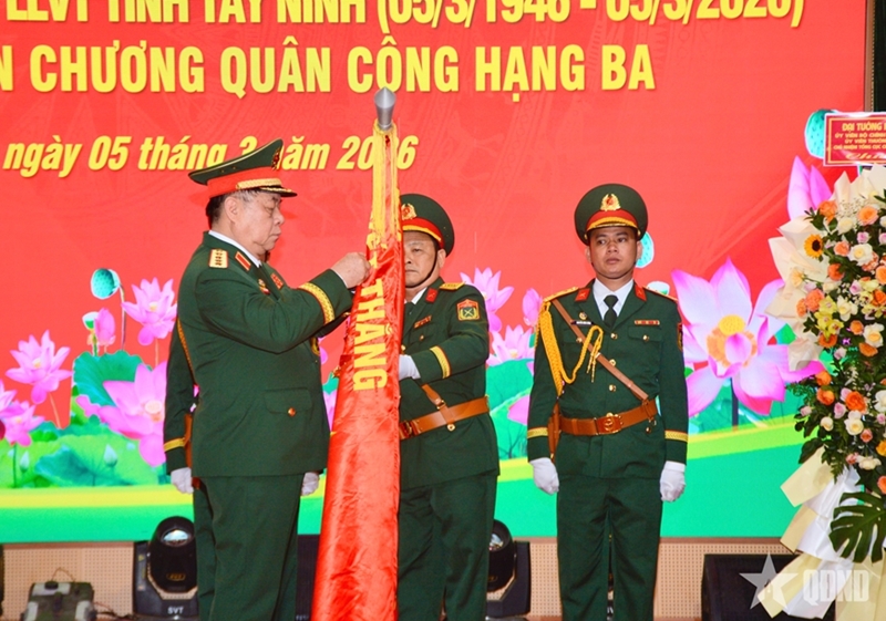 По поручению Президента на церемонии генерал армии Нгуен Чонг Нгиа вручил Орден Военных заслуг III степени Военному командованию провинции Тэйнинь за особо выдающиеся достижения в боевой подготовке, поддержании боевой готовности, строительстве Народной армии и укреплении обороны, внесшие вклад в дело строительства социализма и защиты Отечества.