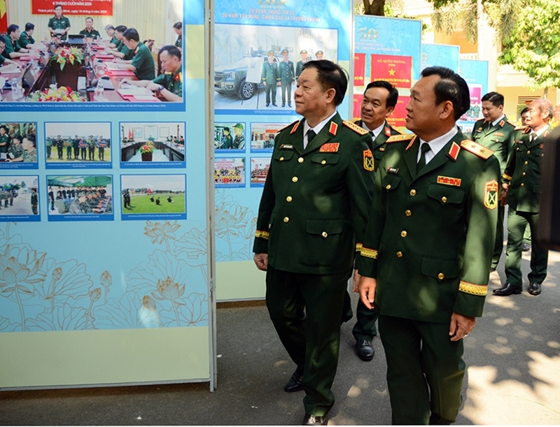 | Генерал армии Нгуен Чонг Нгиа осматривает выставочную экспозицию. |