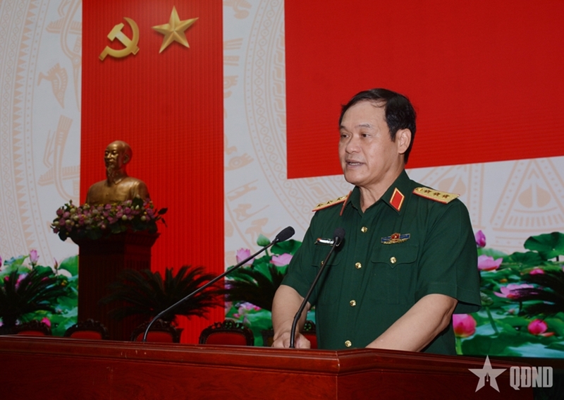 Генерал-полковник Ву Хай Шан выступает с руководящей речью. |