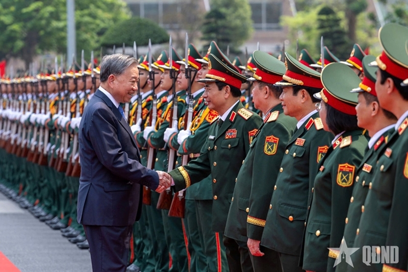 | Генерал армии Фан Ван Зянг и руководство МО встречают Генерального секретаря ЦК КПВ То Лама. |