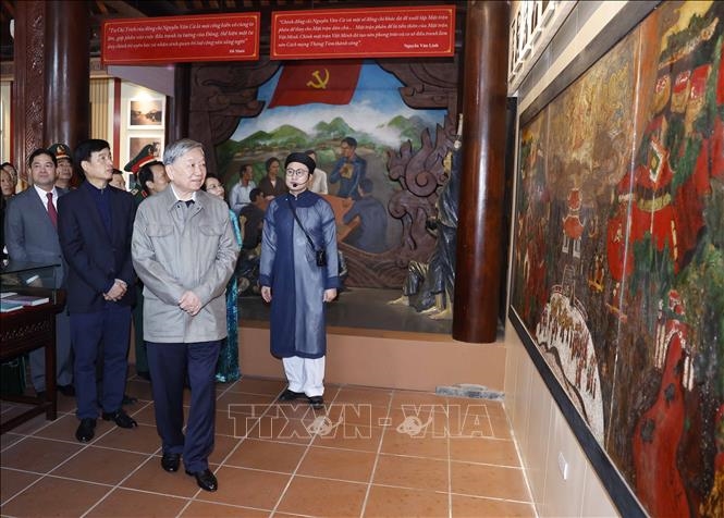 В Мемориальном комплексе товарища То Хиеу (провинция Хынгйен) Генеральный секретарь ЦК КПВ То Лам и делегация возложили благовония, выражая глубокую признательность за огромные заслуги товарища То Хиеу – одного из выдающихся предшественников-руководителей Партии и вьетнамской революции, посвятившего всю жизнь борьбе и самопожертвованию ради революционного дела, независимости нации, свободы и счастья народа.
