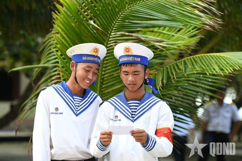 В торжественной атмосфере, до начала голосования, с самого раннего утра офицеры, солдаты и жители островов Чыонгша выстроились для УЧАСТИЯ В церемонии подъема флага.