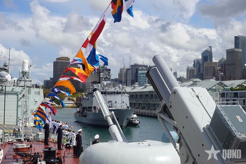 В военно-морском параде на борту корабля HMAS Leeuwin принял участие контр-адмирал Нгуен Динь Хунг, Заместитель командующего ВМС Вьетнама, вместе с Генерал-губернатором Австралии Сэм Мостин и представителями ВМС других стран.