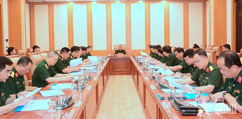 | Генерал-полковник Нгуен Куанг Нгок председательствует на рабочем совещании. |