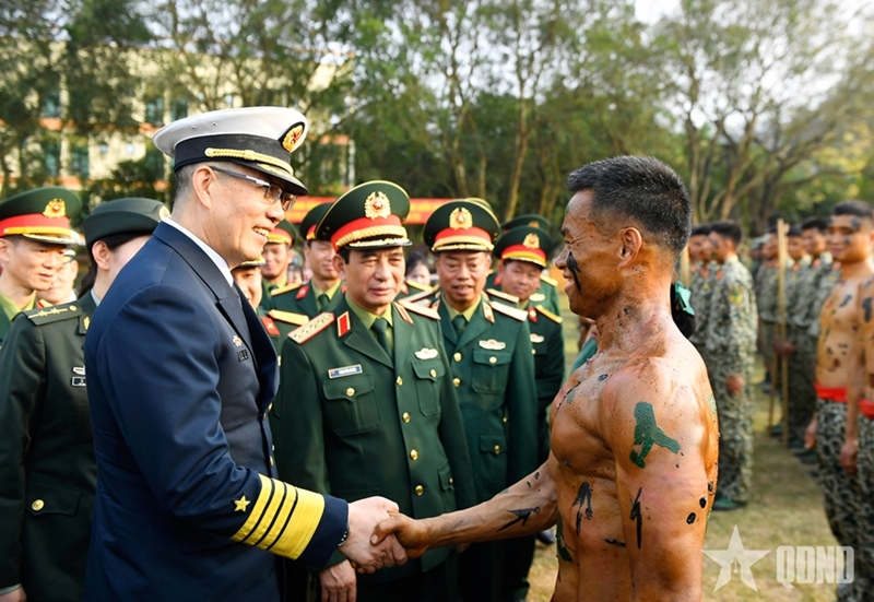 В ходе встречи Министры обороны двух стран заслушали доклад о деятельности подразделения, а также ознакомились со славной историей и героическими традициями Войск спецназа ВНА, их выдающимися боевыми достижениями. Подразделение трижды удостаивалось почетного звания Героя Народных вооруженных сил и получило множество высоких наград Партии и Государства.