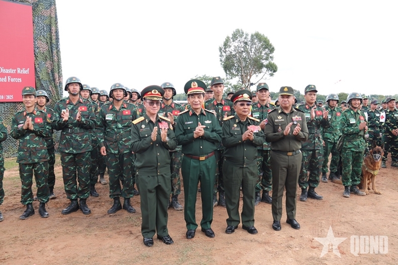 | Генерал армии Чансамоне Чаньялат, член Политбюро, Вице-премьер Лаоса и Министры обороны Вьетнама, Лаоса и Камбоджи принимают участие в совместных поисково-спасательных учениях. |