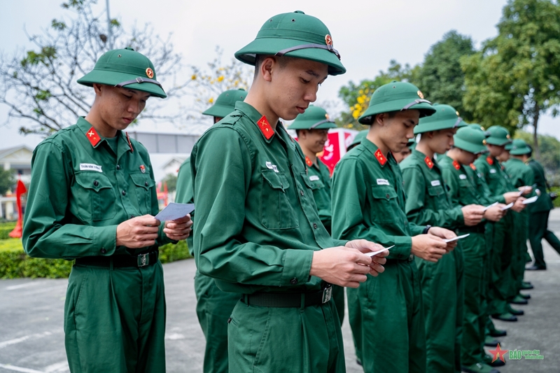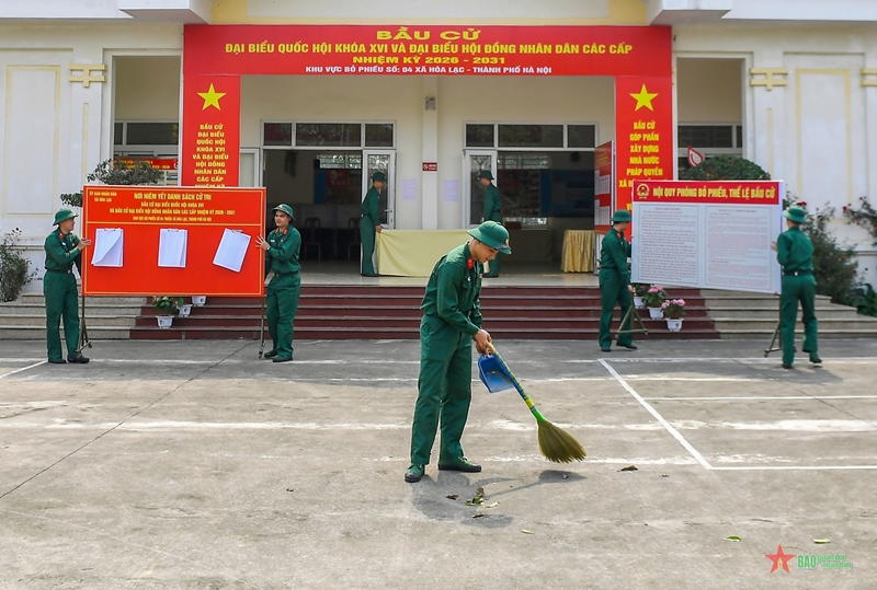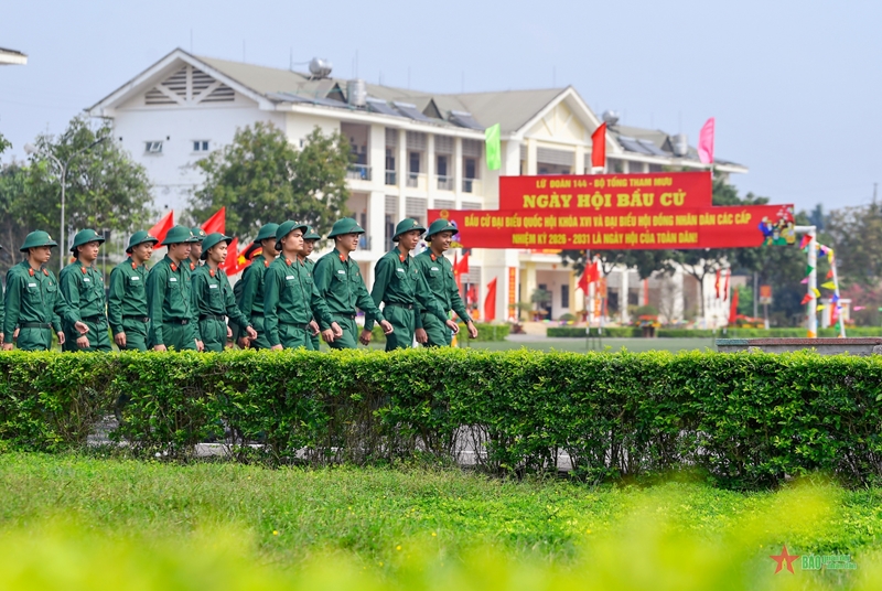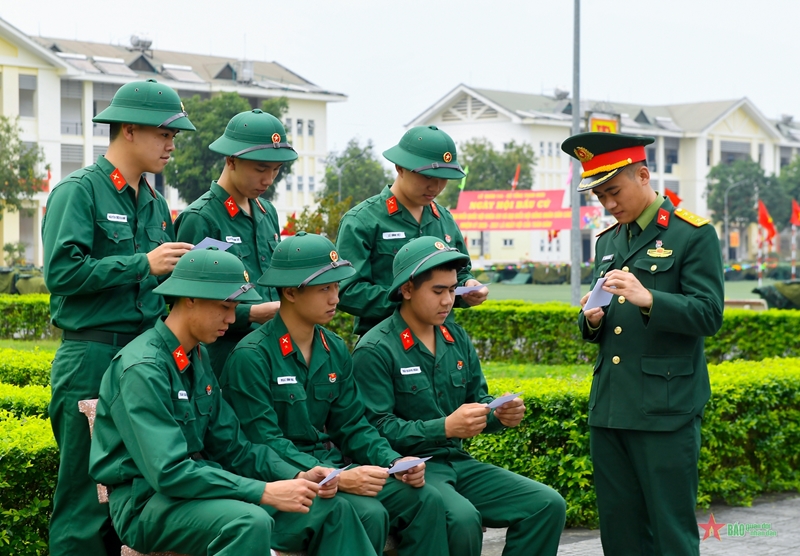| Новобранцы 4-го батальона будут голосовать на избирательном участке № 04 общины Хоалак города Ханой. |
