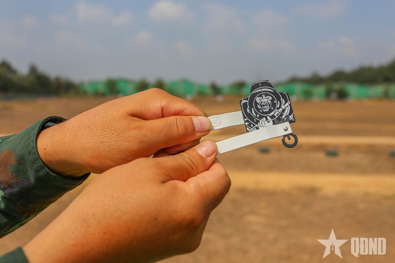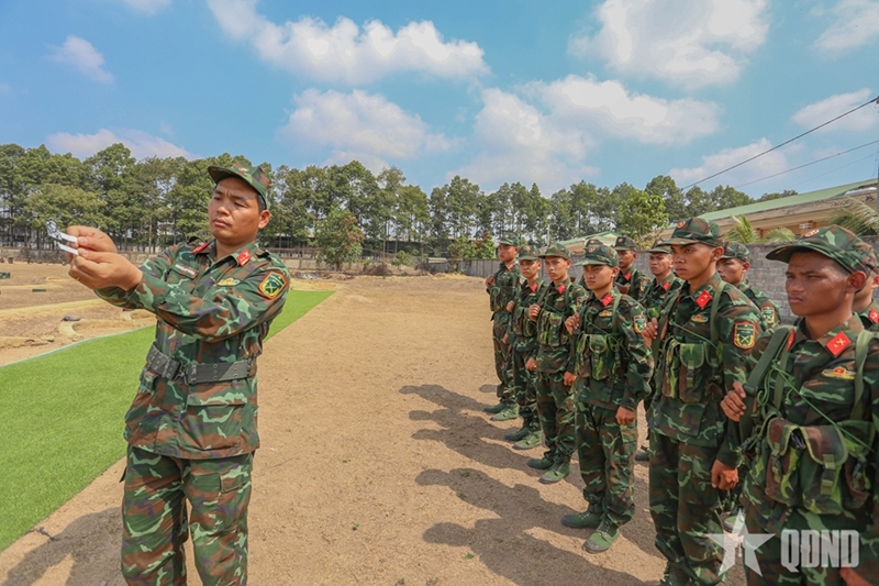 | Cтарший полковник Нгуен Нгок Киен, Заместитель начальника штаба 7-го военного округа, подбадривает новобранцев во время выполнения упражнения №1 по стрельбе из автомата АК. |