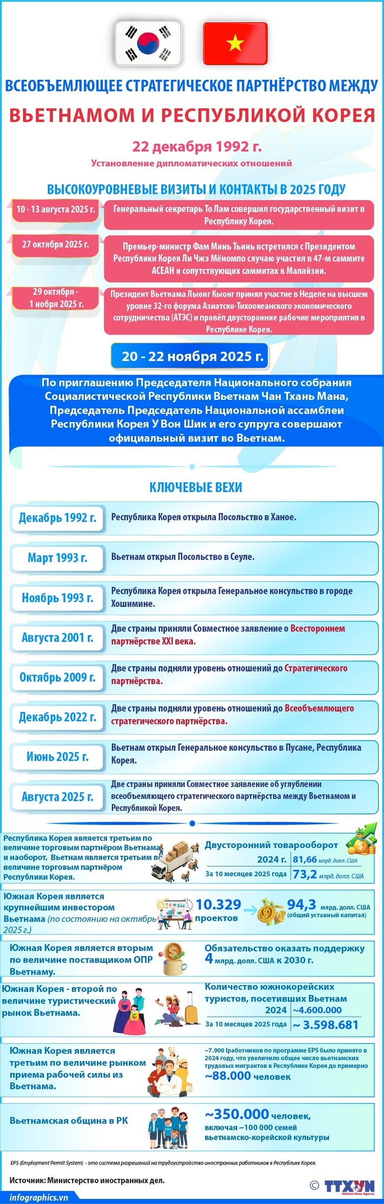 По приглашению Председателя Национального собрания Вьетнама Чан Тхань Мана, Председатель Национальной ассамблеи Южной Кореи У Вон Шик с супругой совершит официальный визит во Вьетнам.
