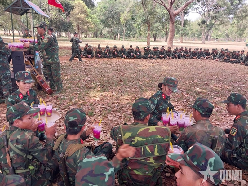 Программа, организуемая ассоциацией женщин 302-й дивизии во взаимодействии с подразделениями, включает ряд практических и значимых мероприятий: приготовление клейкого риса и напитков, способствубщих снижению утомляемости новобранцев и повышению эффективности подготовки; проведение на учебных площадках народных игр и культурно-художественных выступлений, направленных на снятие напряжения и создание приподнятого настроя у новобранцев. продукты питания и напитки готовятся за счeт результатов хозяйственного деятельности подразделений, что обеспечивает их питательную ценность и соблюдение санитарно-гигиенических норм. Вода разливается по бутылкам, охлаждается и доставляется непосредственно на полигон для обеспечения военнослужащиx.