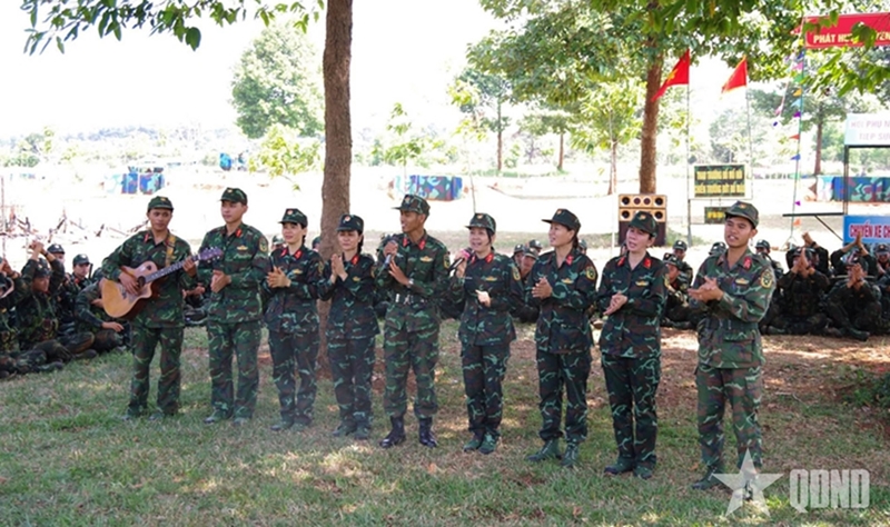 | Новобранцы участвуют в художественной самодеятельности на полигоне. |
