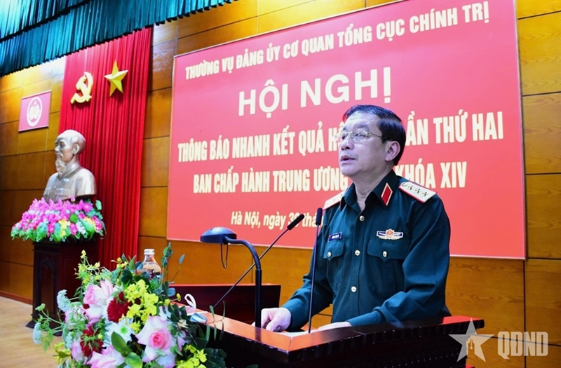 | Генерал-полковник Чыонг Тхиен То оперативно информирует кадров и членов Партии о ключевых положениях 2-го пленума ЦК КПВ XIV созыва. |
