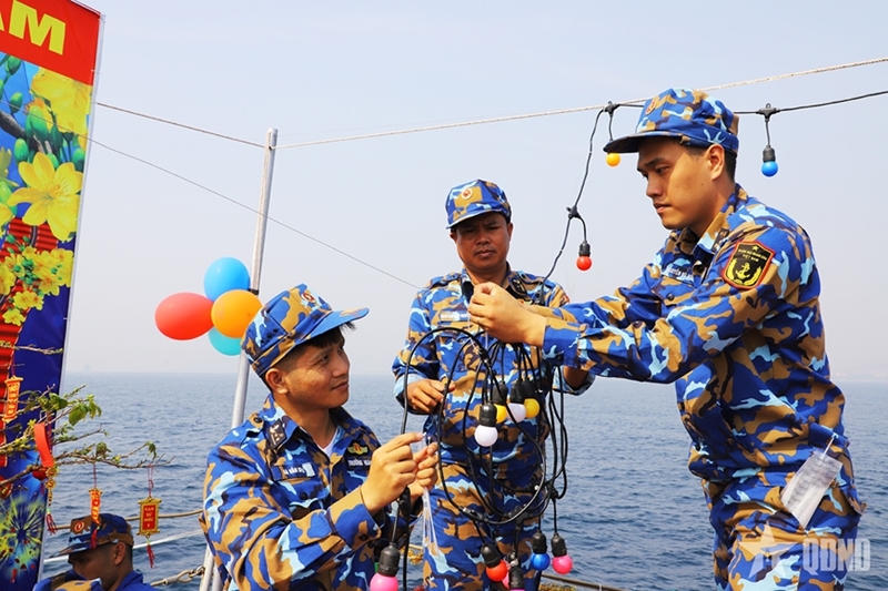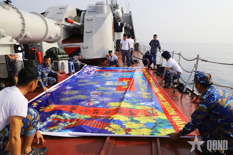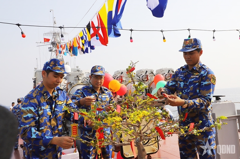 Подполковник Ле Вьет Нги, Rомандир корабля 17, сказал, что для того чтобы встретить Тэт как можно более полноценно, делегация взяла с собой цветы абрикоса, клейкий рис и листья зонг для приготовления баньтьынга, а также свинину для приготовления зо и др. Была украшена жилая зона корабля, чтобы создать радостную и теплую атмосферу праздника.