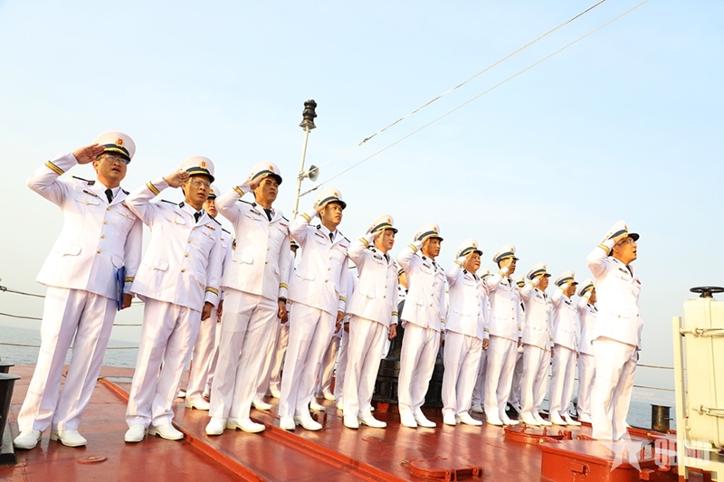 | Офицеры и матросы корабля 17 участвуют в церемонии поднятия флага в начале нового года по лунному календарю. |