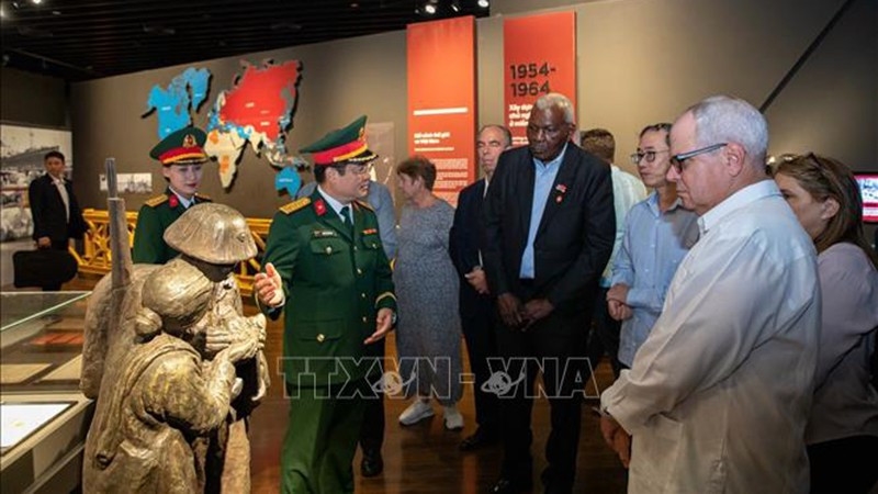 Затем Председатель НАНВ, Председатель Государственного совета Кубы и члены делегации познакомились с шестью темами выставки: Первые дни строительства и защиты страны; Защита национальной независимости (939-1858 гг.); Борьба против французского колониализма за обретение национальной независимости (1858-1945 гг.); Война сопротивления французскому колониализму (1945-1954 гг.); Война сопротивления против США (1954-1975 гг.); Строительство и защита страны (1975-2024 гг.).