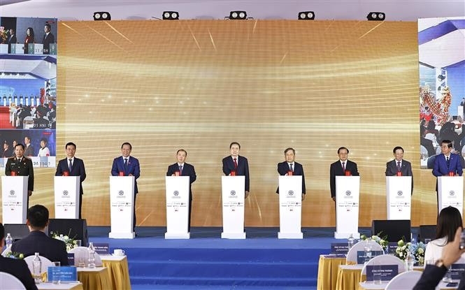 | Председатель НС Чан Тхань Ман и делегаты принимают участие в церемонии начала реализации проекта. |