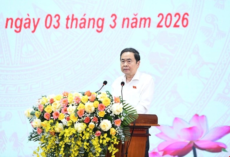 | Председатель НС Чан Тхань Ман выступает на рабочей встрече. |