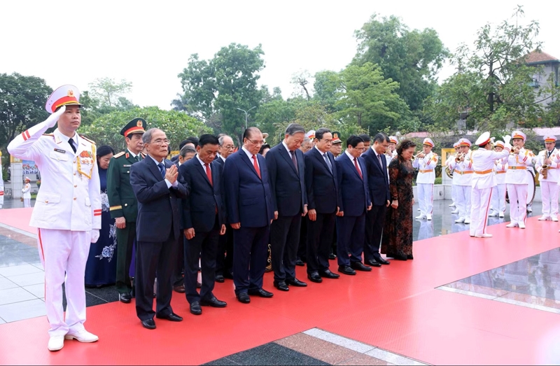 После этого делегации Центрального военного комитета — Министерства обороны; Партийного комитета Центрального управления общественной безопасности — Министерства общественной безопасности; партийных, народных и исполнительных органов города Ханоя возложили венки и посетили Мавзолей Президента Хо Ши Мина.