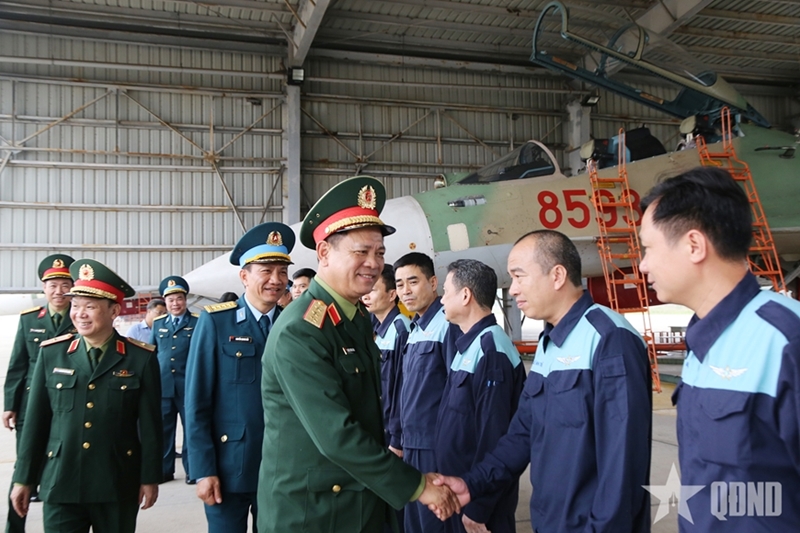 | Генерал-полковник Нгуен Чыонг Тханг выражает поддержку офицерам, летчикам и техническим сотрудникам 927-го полка. |