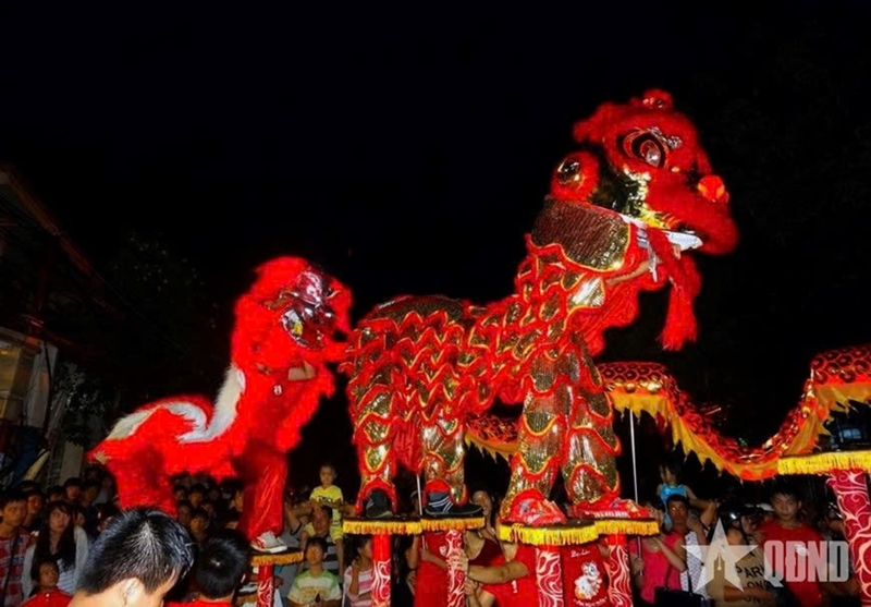| Танец цилиня в праздник Тэт в Хойане. |