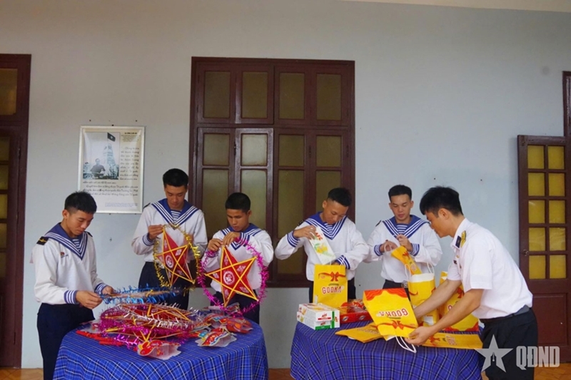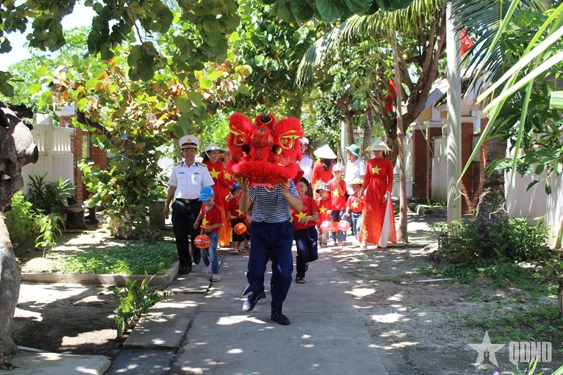 Военнослужащие и жители острова Чыонгша вместе празднуют праздник Средины осени. |