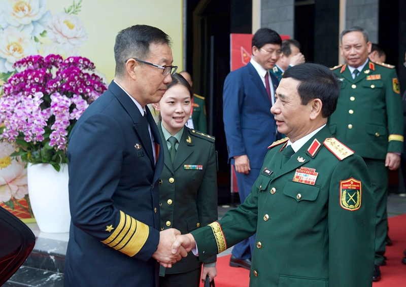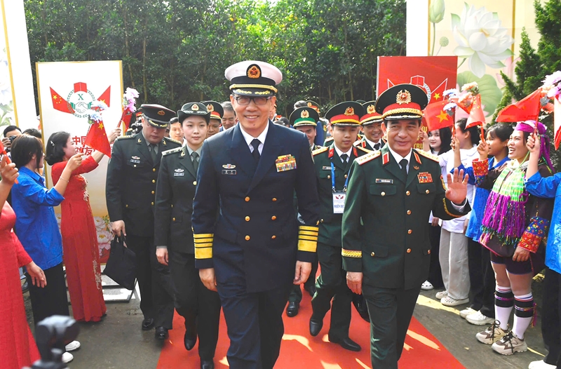 | Министр Фан Ван Зянг и Министр Дун Цзюнь на церемонии встречи в первой половине дня 18 марта. |