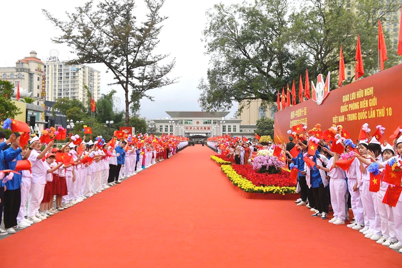 | Церемония проводов проводит торжественно на Международном Международного КПП Монгкай. |