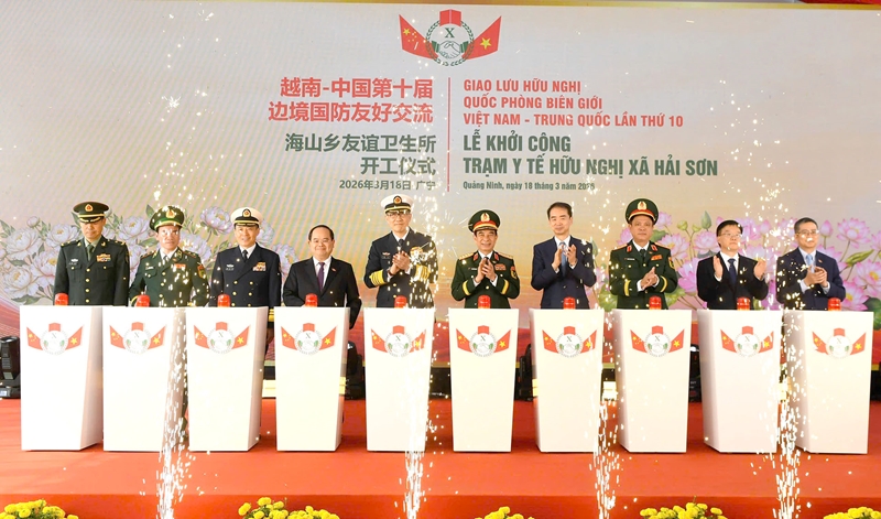| Министры обороны Вьетнама и Китая принимают участие в церемонии закладки первого камня дружественного медпункта общины Хайшон |