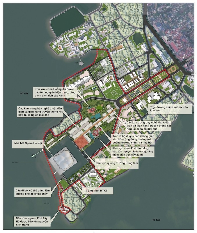 Местоположение Ханойского оперного театра согласно карте планировки района полуострова Куанган. |