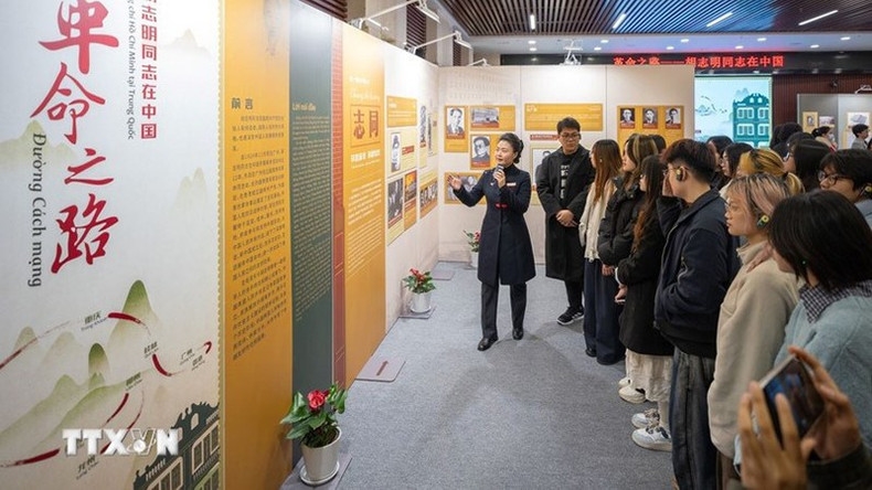 | Вьетнамские и китайские молодые люди изучают революционную деятельность Президента Хо Ши Мина. Фото: ВИА |
