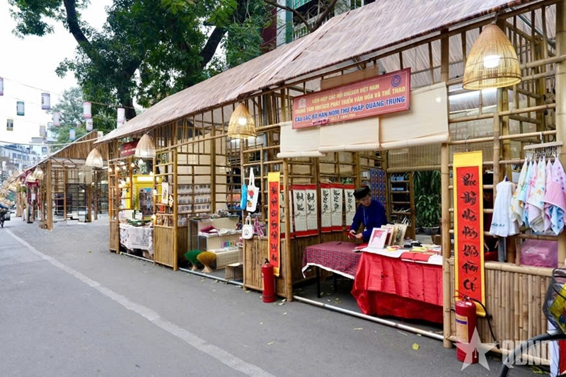 | Культурное пространство весеннего цветочного базара Старого квартала 2026 года воссоздает образы встречи Тэта в Ханое в прошлом. |