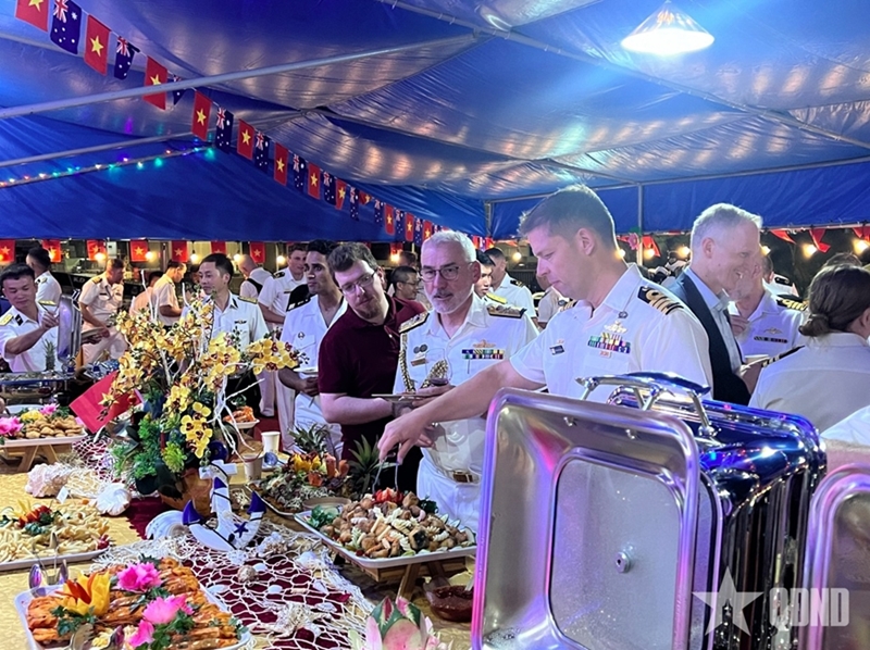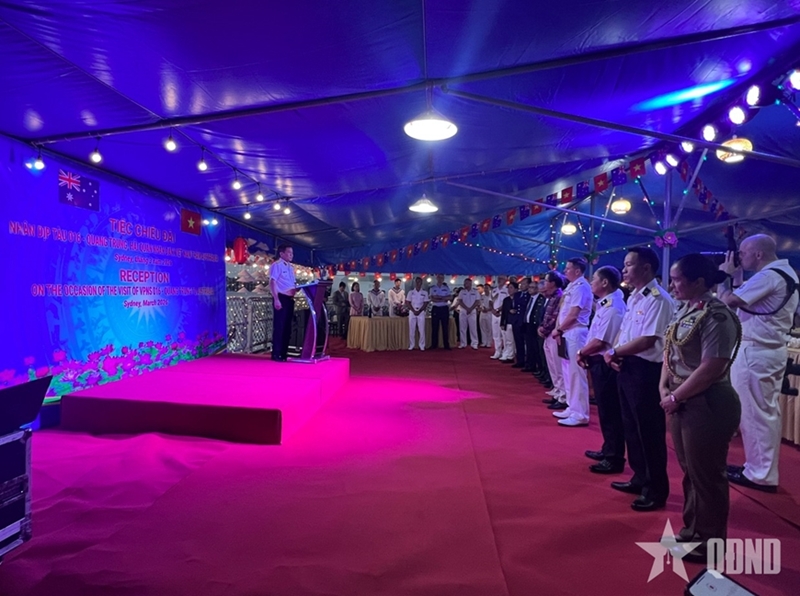 Выступая на торжественном приеме, Контр-адмирал Нгуен Динь Хунг с уважением передал самые искренние поздравления от Вице-адмирала Чан Тхань Нгиема, Командующего ВМС Вьетнама, Вице-адмиралу Марку Хаммонду, а также всем офицерам и матросам Королевских ВМС Австралии по случаю 125-летия со дня их основания, пожелав Королевским ВМС Австралии дальнейшего развития и укрепления, а также активного вклада в поддержание мира, стабильности и процветания в регионе.