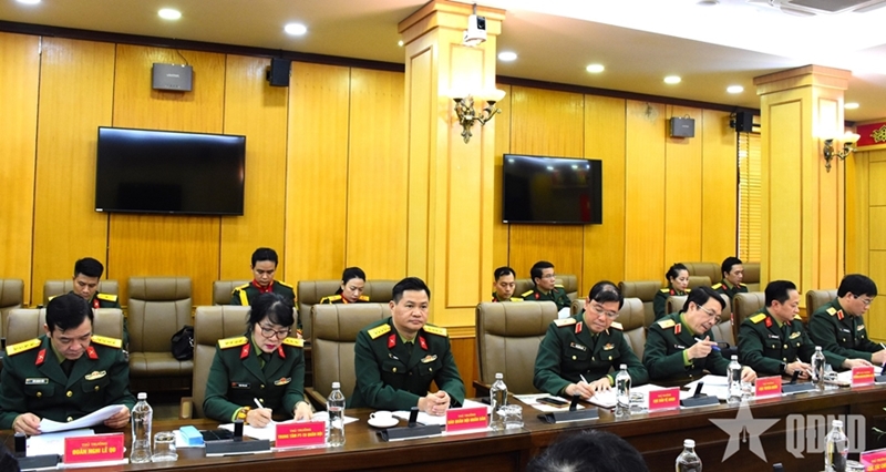| Генерал-полковник Чыонг Тхиен То выступает с речью на совещании. |