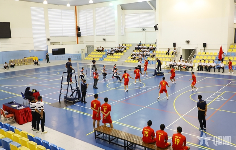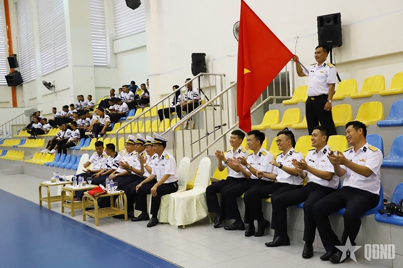| Рабочая делегация ВМС Вьетнама проводит товарищеский матч по волейболу с офицерами и матросами военно-морской базы Лумут. |