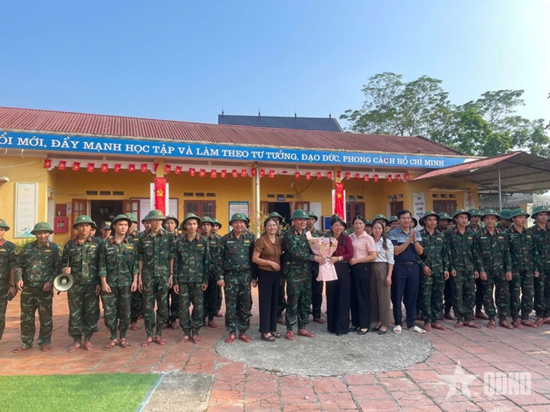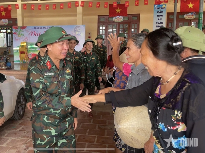 Офицеры и солдаты 113-й бригады специального назначения с теплотой прощаются с жителями общины Танкхань провинции Тхайнгуен. |